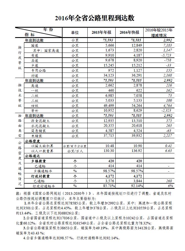 2016年全省公路里程到达数