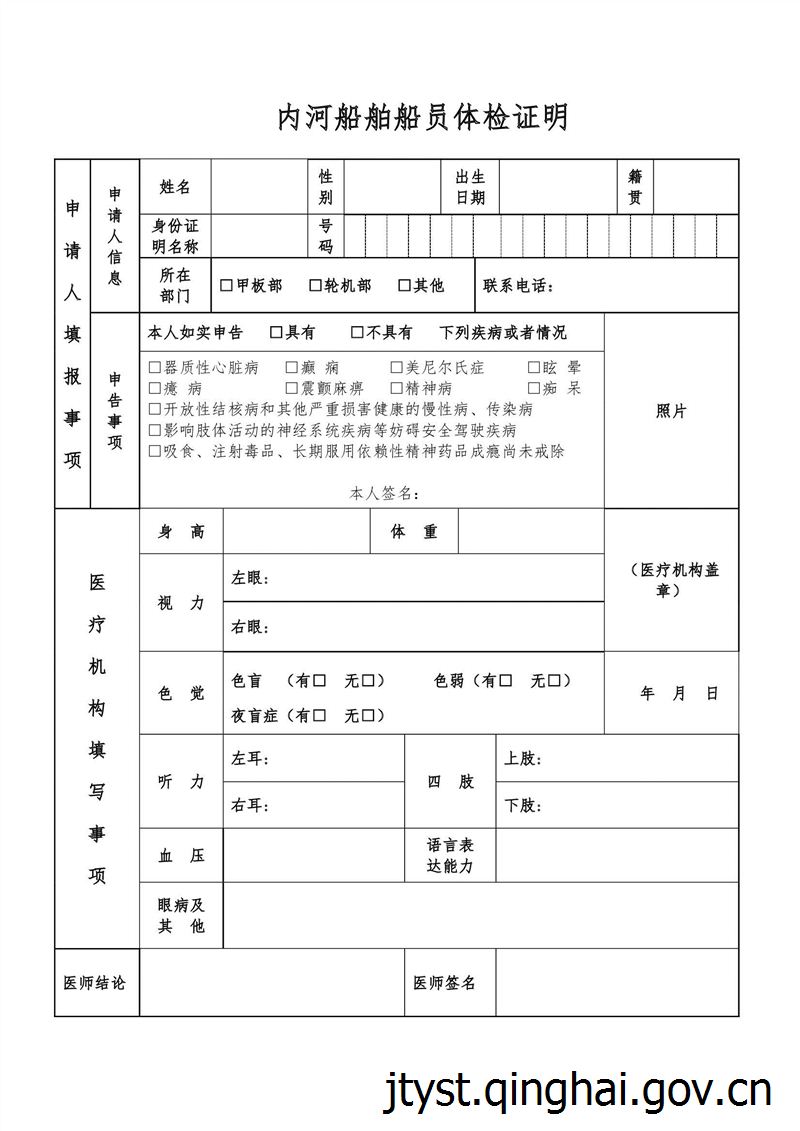 (四)最近2年内的符合内河船舶船员适任岗位健康标准的体检证明;