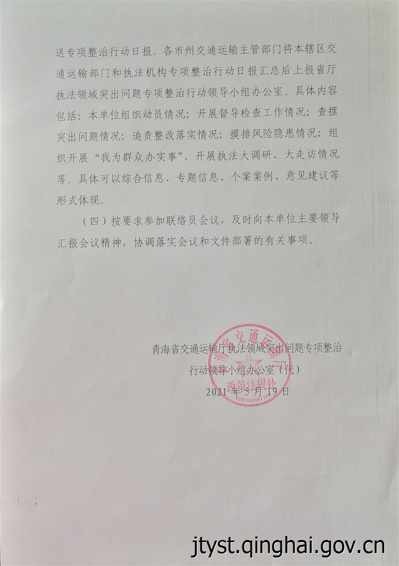 关于建立青海省交通运输执法领域突出问题专项整治行动联络员工作制度的通知