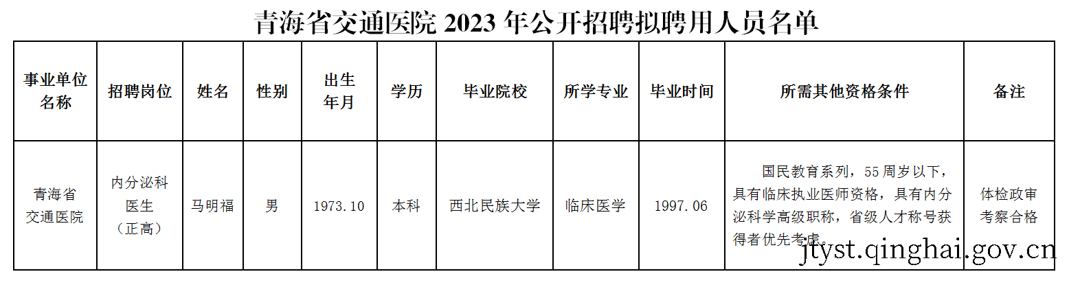 附件:青海省交通医院2023年公开招聘拟聘用人员名单