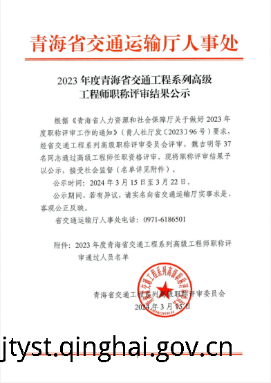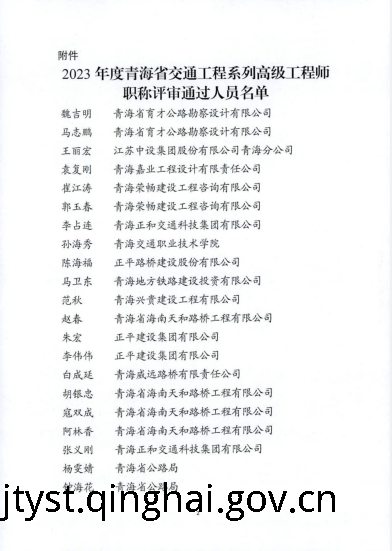 2023年度青海省交通工程系列高级工程师职称评审结果公示