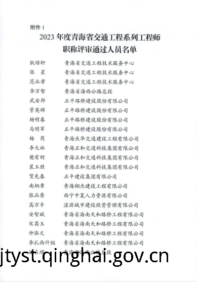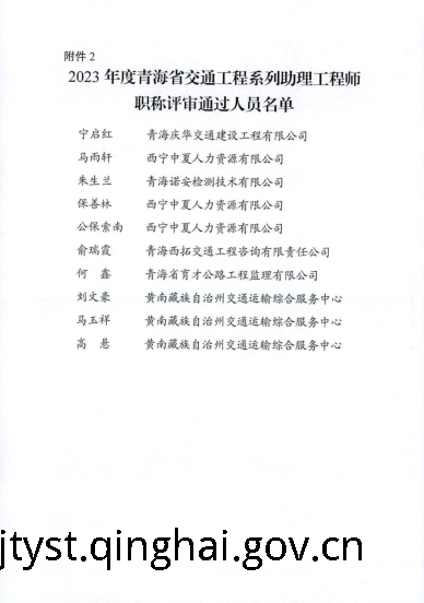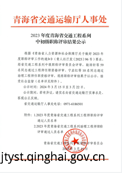 2023年度青海省交通工程系列中初级工程师职称评审结果公示