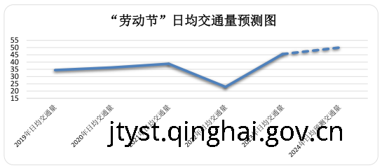 根据省公路局和省高速公路运营管理有限公司提供的历年数据分析,近六年“劳动节”期间我省公路交通量呈增长趋势,交通量分布呈现“西宁周边大、海西青南地区小”的特征,其中交通量较大收费站分别为G6京藏高速海东主线收费站、西宁西主线收费站,G0612西和高速海东西主线收费站。2021年“劳动节”期间日交通量为38.81万辆;2022年“劳动节”期间日交通量为22.89万辆,2023年“劳动节”期间日交通量为45.49万辆;2024年“劳动节”预计交通量同比增加5%左右,达到50万辆/日。5月5日(假期第五日)通往西宁道路交通量可能出现局部高峰,5月6日(假期后一日)交通量将回落。