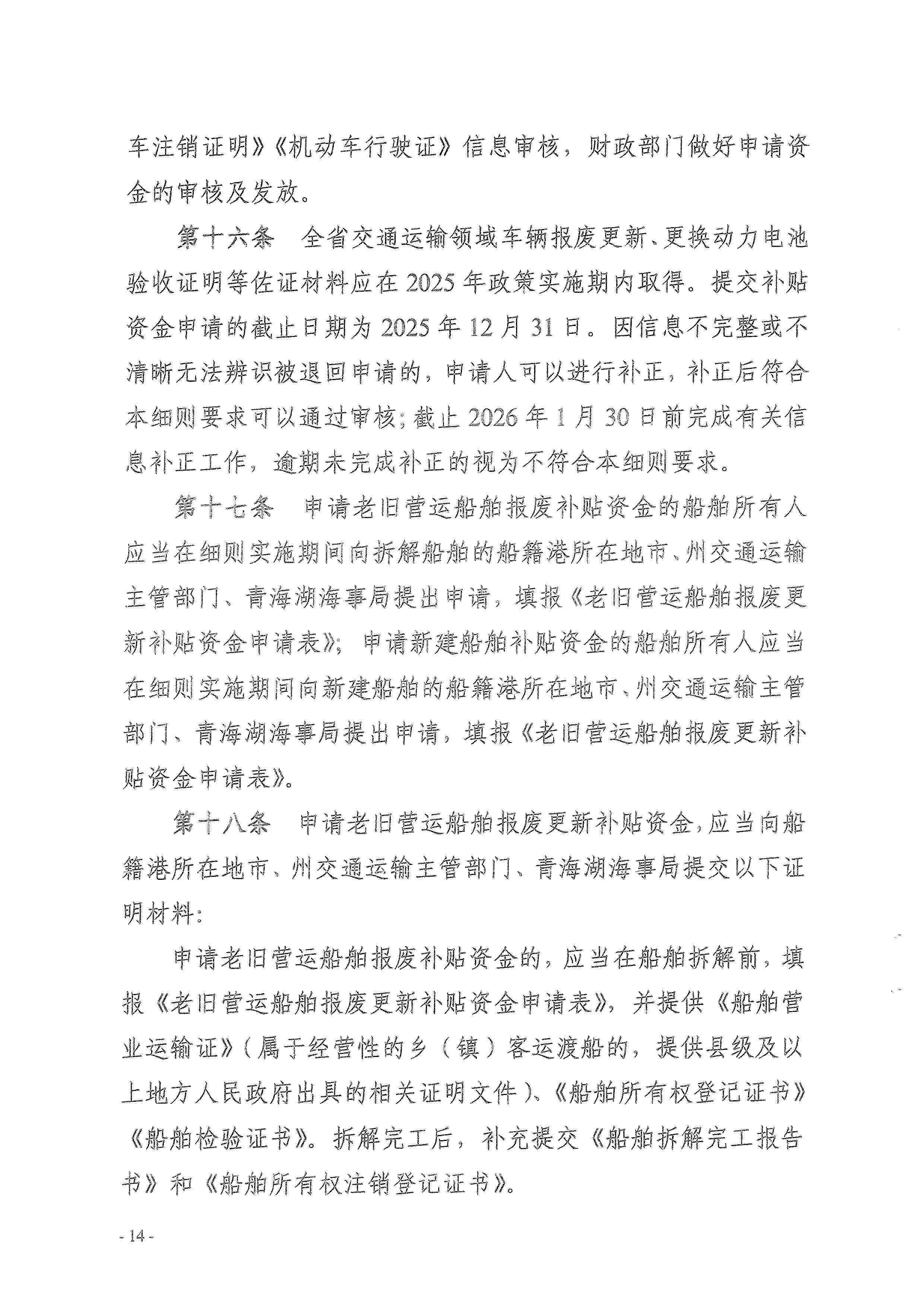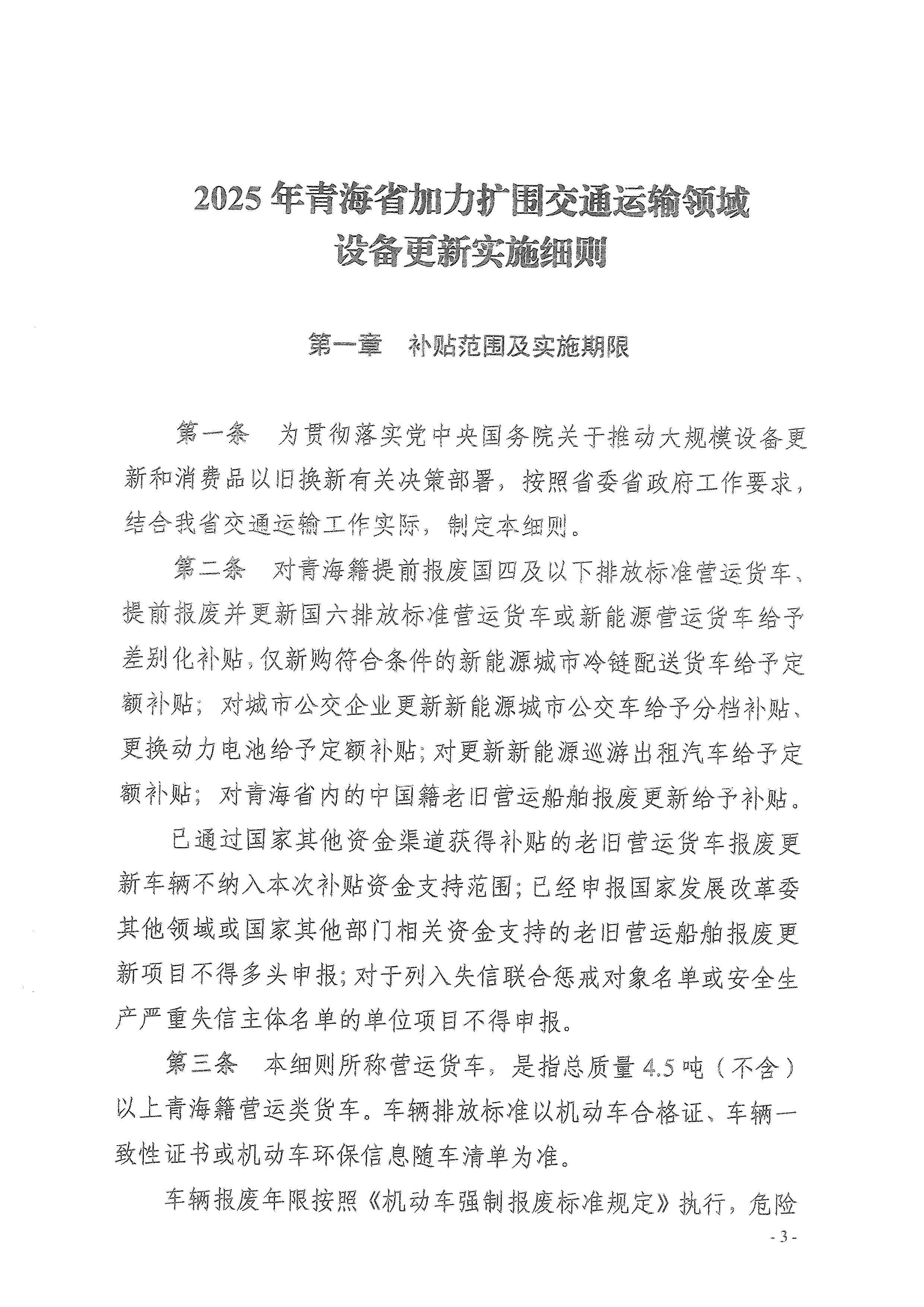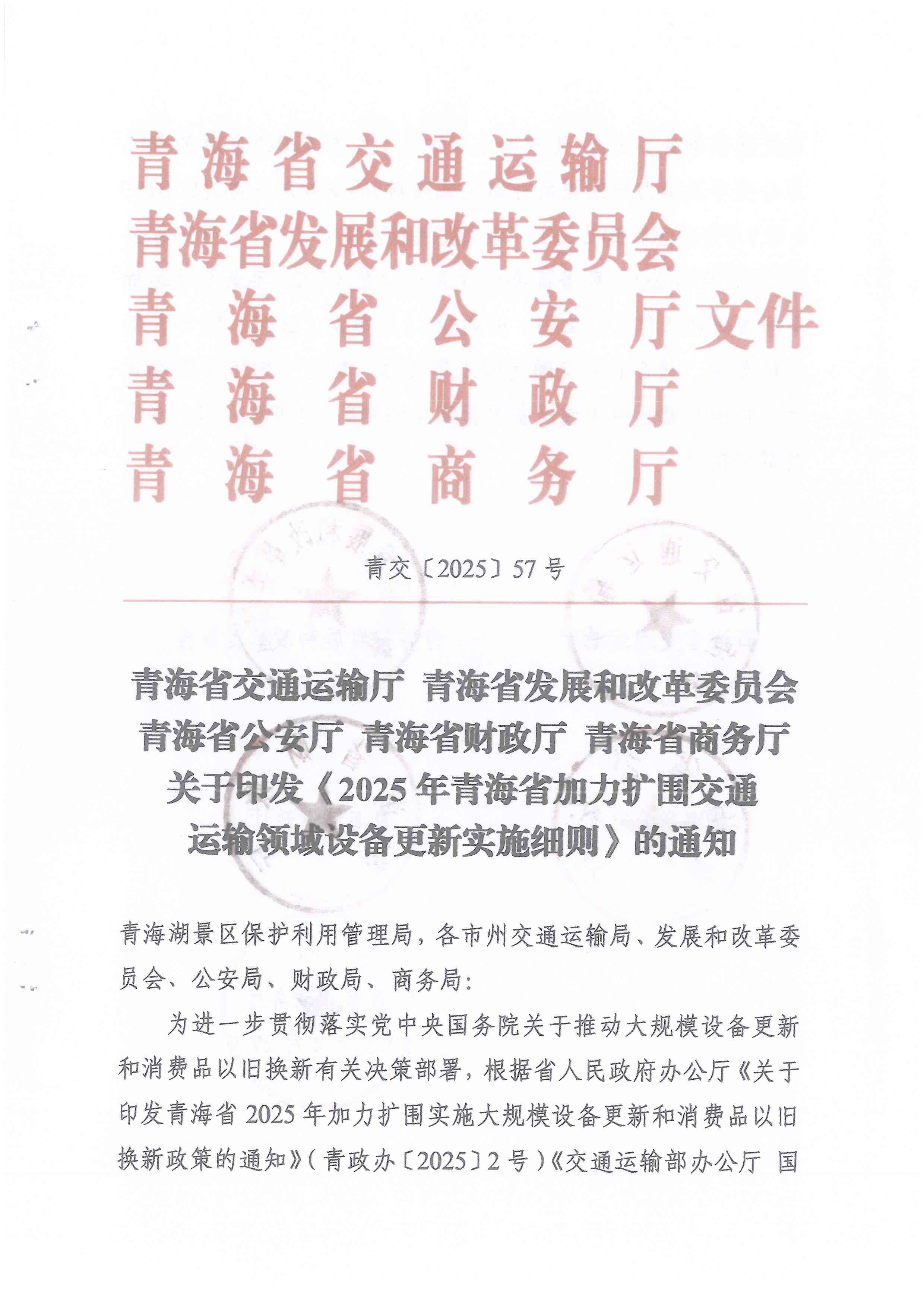 2025年青海省加力扩围交通运输领域设备更新实施细则