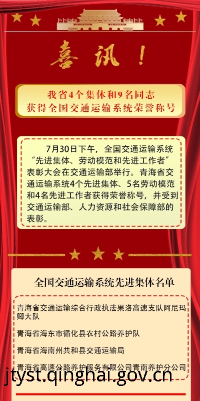 我省4个集体和9名同志获得全国交通运输系统荣誉称号